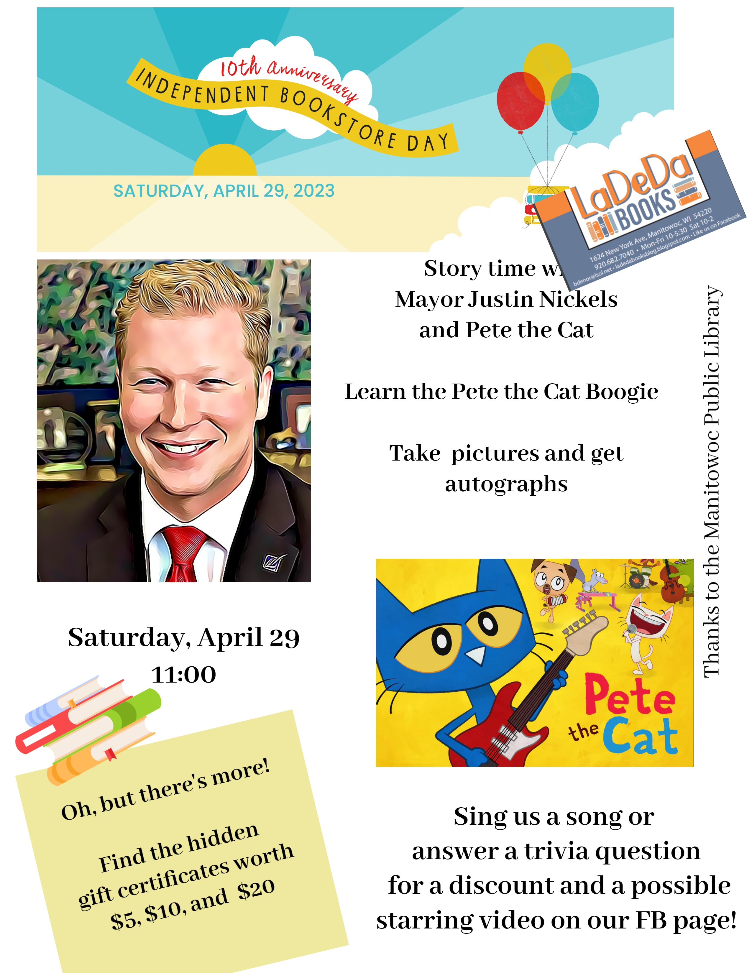 October 26 at LaDeDa Books, 1624 New York Avenue in Manitowoc.